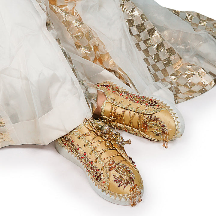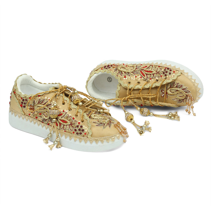 Embrace your inner cool and chic bride on your special day, where comfort meets exquisite style! From the initial vision of a stunning bridal sneaker to its meticulous creation by our talented artisans, we poured countless hours into crafting the perfect fusion of design, pattern, and color. Our mission was to blend traditional elegance with contemporary flair seamlessly, and we are overjoyed with how beautifully it has all come together.