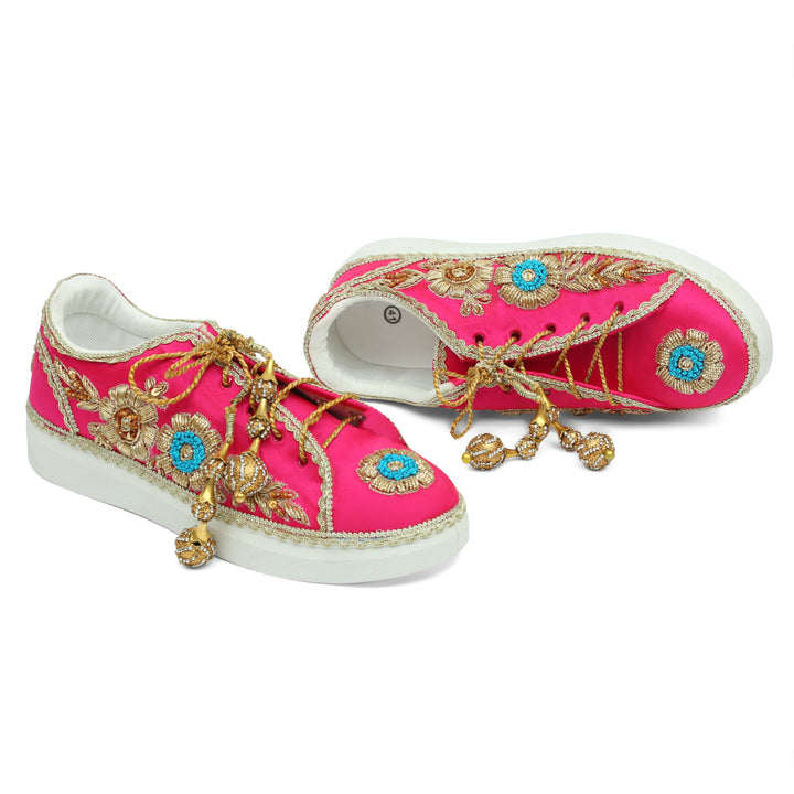 Embrace your inner cool and chic bride on your special day, where comfort meets exquisite style! From the initial vision of a stunning bridal sneaker to its meticulous creation by our talented artisans, we poured countless hours into crafting the perfect fusion of design, pattern, and color. Our mission was to blend traditional elegance with contemporary flair seamlessly, and we are overjoyed with how beautifully it has all come together.