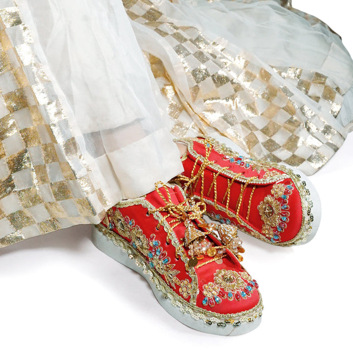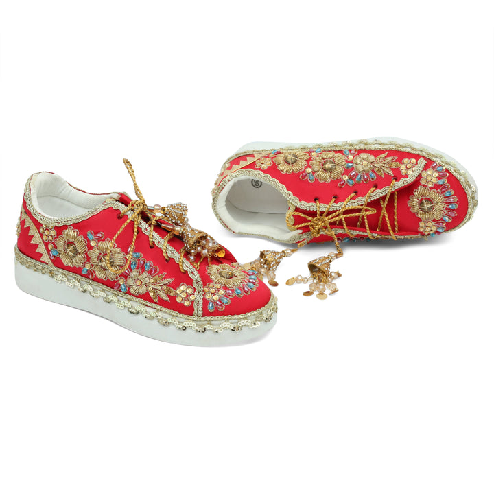 Embrace your inner cool and chic bride on your special day, where comfort meets exquisite style! From the initial vision of a stunning bridal sneaker to its meticulous creation by our talented artisans, we poured countless hours into crafting the perfect fusion of design, pattern, and color. Our mission was to blend traditional elegance with contemporary flair seamlessly, and we are overjoyed with how beautifully it has all come together.