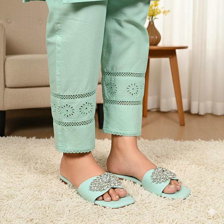 FL-IR1-Green represents a prime example of delightful, opulent, and time-honored craftsmanship showcased in elegant flats adorned with exquisite BOW detailing, meticulously made by dedicated rural shoemakers to showcase the unparalleled beauty of captivating feet.
