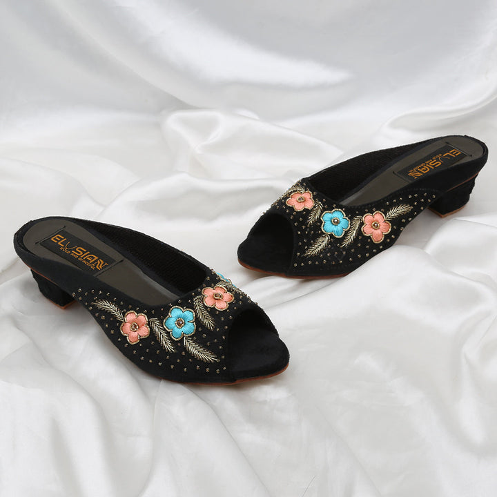 These open-toe platform wedges are meticulously crafted from exquisite ivory velvet, showcasing beautiful embroidery detailing across the shoe. The shoes are adorned with a removable, dainty ankle strap.