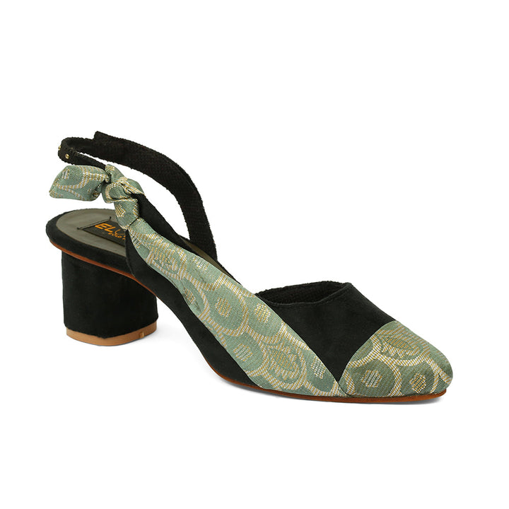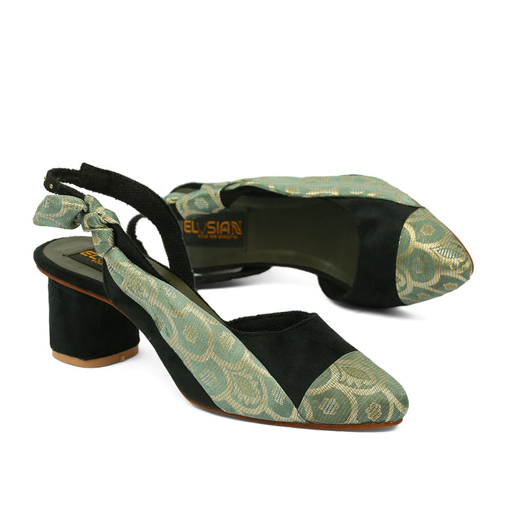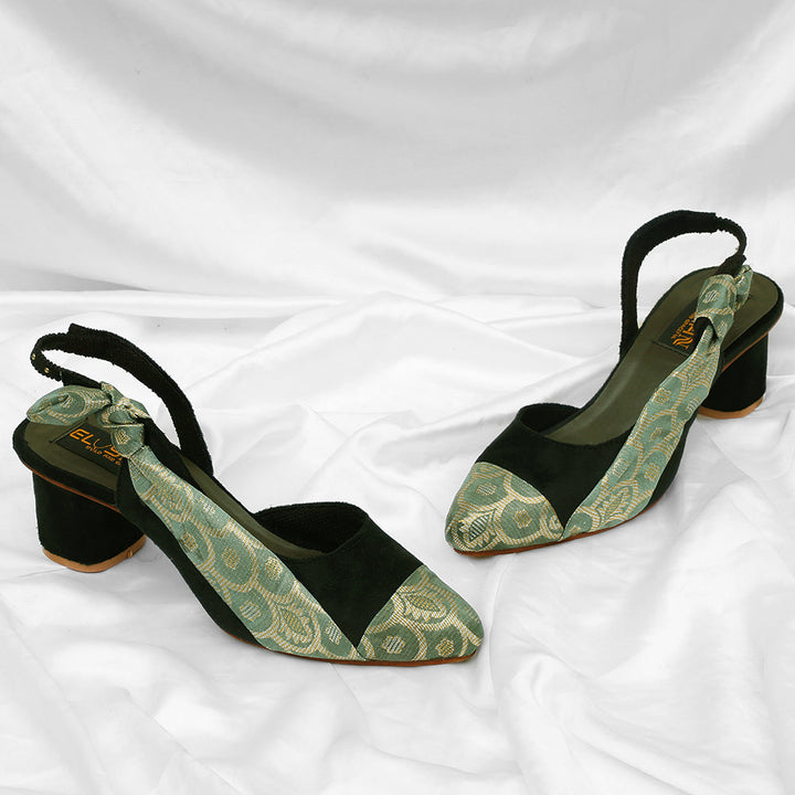These closed-toe platform wedges are meticulously crafted with love. The shoes are adorned with fabric and velvet.