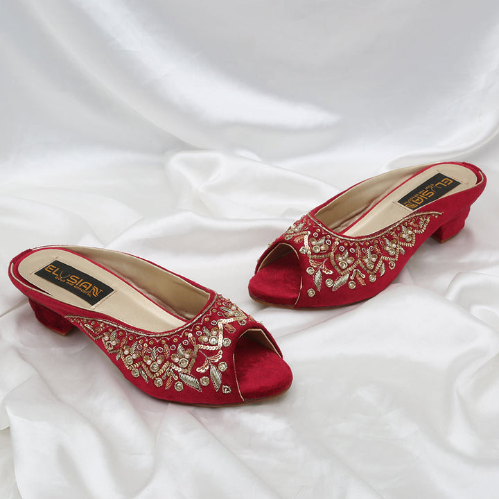 These open-toe platform wedges are meticulously crafted from exquisite ivory velvet, showcasing beautiful embroidery detailing across the shoe. The shoes are adorned with a removable, dainty ankle strap.