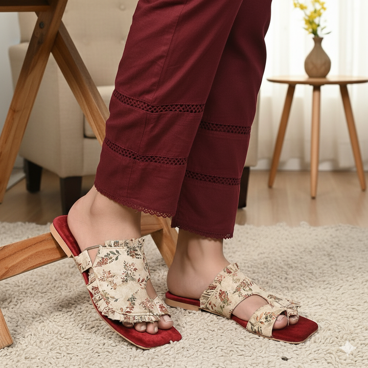 FL-S6-Cream represents a prime example of delightful, opulent, and time-honored craftsmanship showcased in elegant flats . These flats stand as cherished cultural legacies of Pakistan, meticulously stitched by dedicated rural shoemakers to showcase the unparalleled beauty of captivating feet.