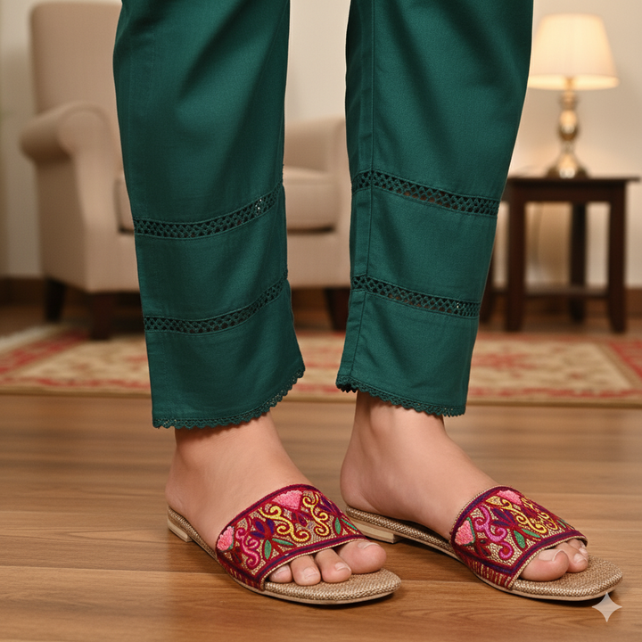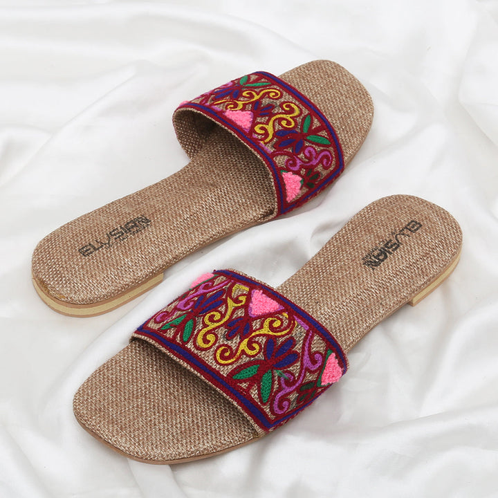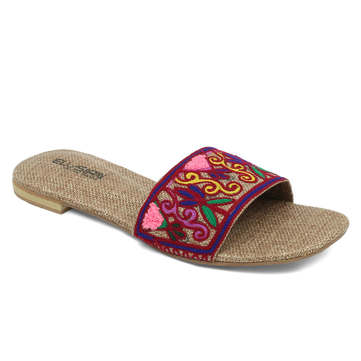 FL-SJ3-Fawn represents a prime example of delightful, opulent, and time-honored craftsmanship showcased in elegant flats adorned with exquisite machine embroidery detailing. These flats stand as cherished cultural legacies of Pakistan, meticulously stitched by dedicated rural shoemakers to showcase the unparalleled beauty of captivating feet.