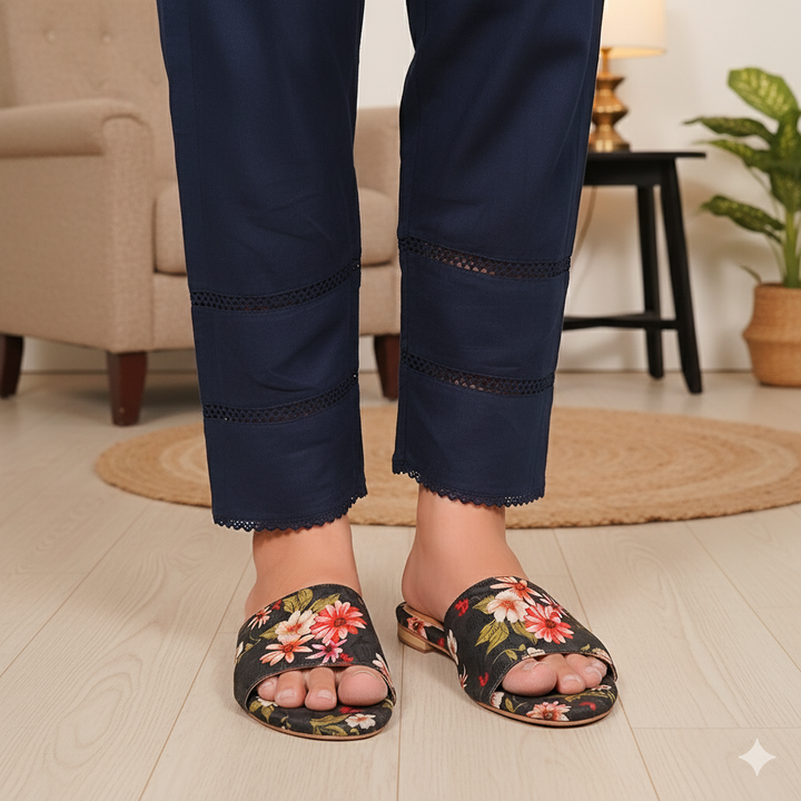 These printed slippers represent a prime example of delightful, opulent, and time-honored craftsmanship showcased in elegant flats, meticulously made by dedicated rural shoemakers to showcase the unparalleled beauty of captivating feet.