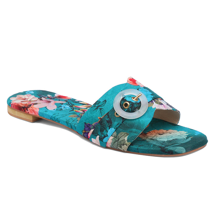 FL14-Printed-Sea-Green(Ring-Buckle) represents a prime example of delightful, opulent, and time-honored craftsmanship showcased in elegant flats, meticulously made by dedicated rural shoemakers to showcase the unparalleled beauty of captivating feet.