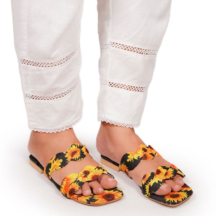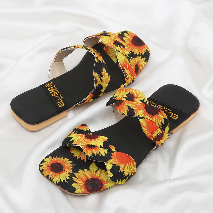 These printed slippers represent a prime example of delightful, opulent, and time-honored craftsmanship showcased in elegant flats, meticulously made by dedicated rural shoemakers to showcase the unparalleled beauty of captivating feet.