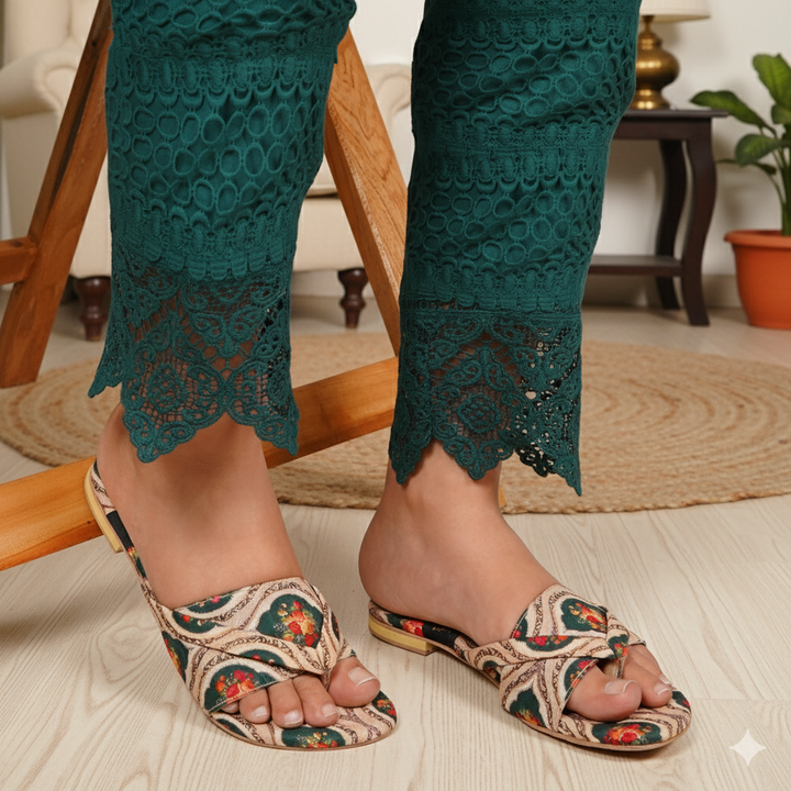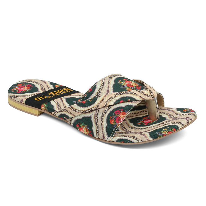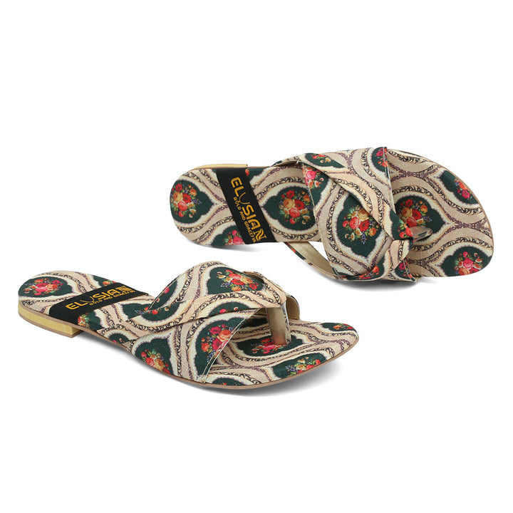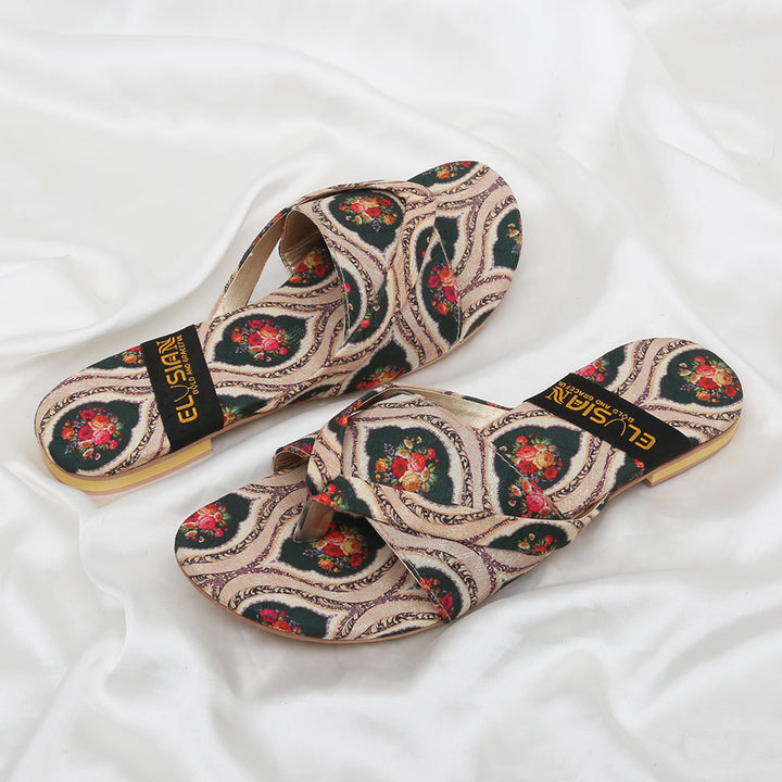 These printed slippers represent a prime example of delightful, opulent, and time-honored craftsmanship showcased in elegant flats, meticulously made by dedicated rural shoemakers to showcase the unparalleled beauty of captivating feet.