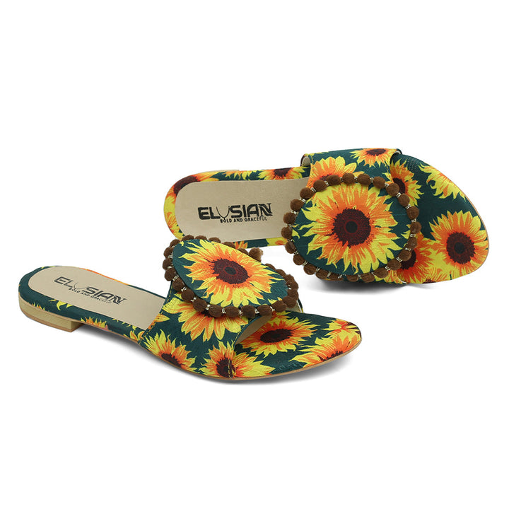 These printed slippers represent a prime example of delightful, opulent, and time-honored craftsmanship showcased in elegant flats, meticulously made by dedicated rural shoemakers to showcase the unparalleled beauty of captivating feet.