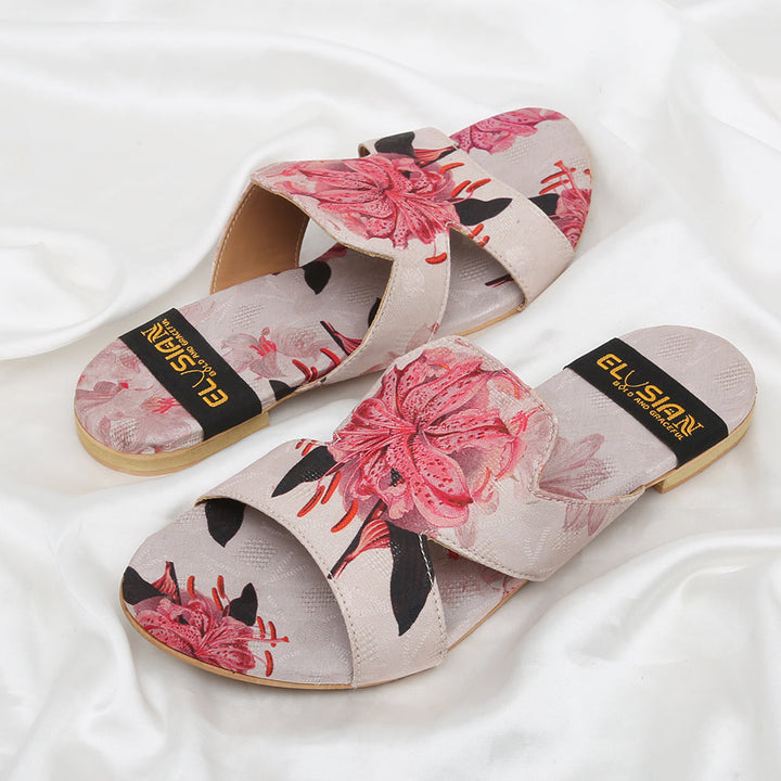 These printed slippers represent a prime example of delightful, opulent, and time-honored craftsmanship showcased in elegant flats, meticulously made by dedicated rural shoemakers to showcase the unparalleled beauty of captivating feet.