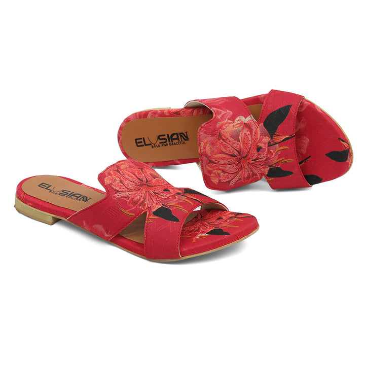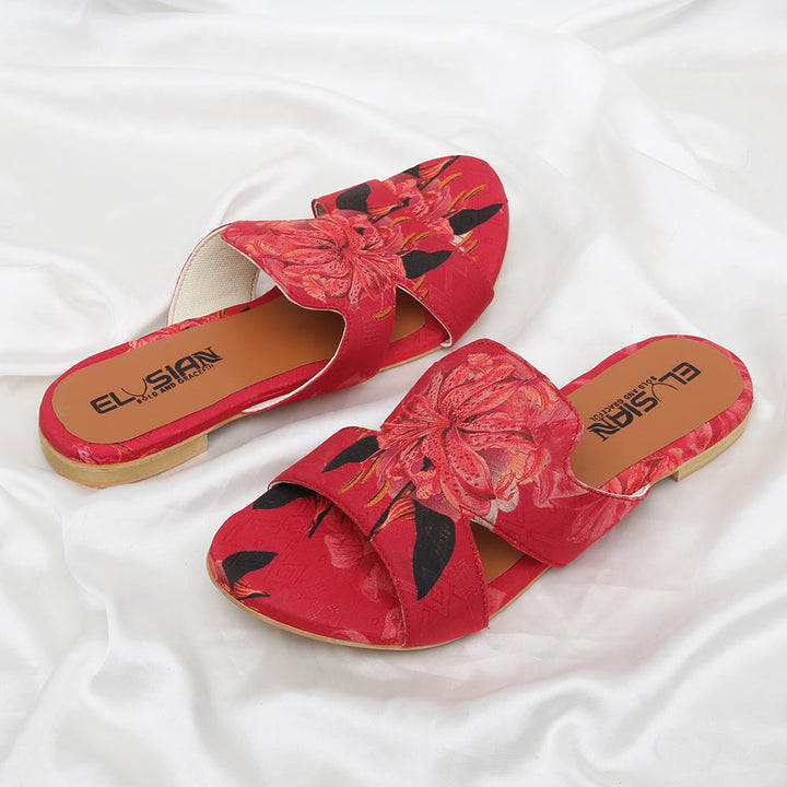 These printed slippers represent a prime example of delightful, opulent, and time-honored craftsmanship showcased in elegant flats, meticulously made by dedicated rural shoemakers to showcase the unparalleled beauty of captivating feet.