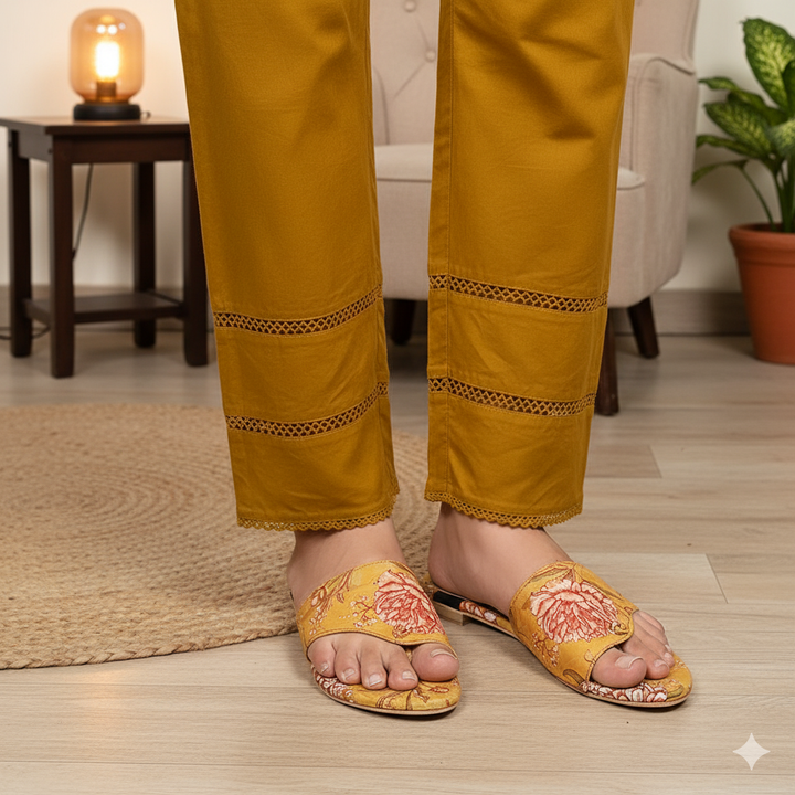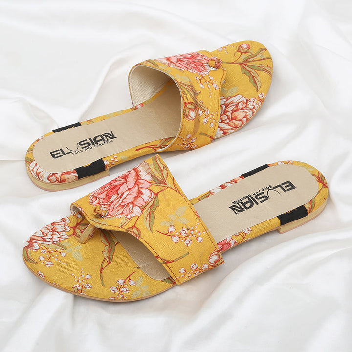 These printed slippers represent a prime example of delightful, opulent, and time-honored craftsmanship showcased in elegant flats, meticulously made by dedicated rural shoemakers to showcase the unparalleled beauty of captivating feet.