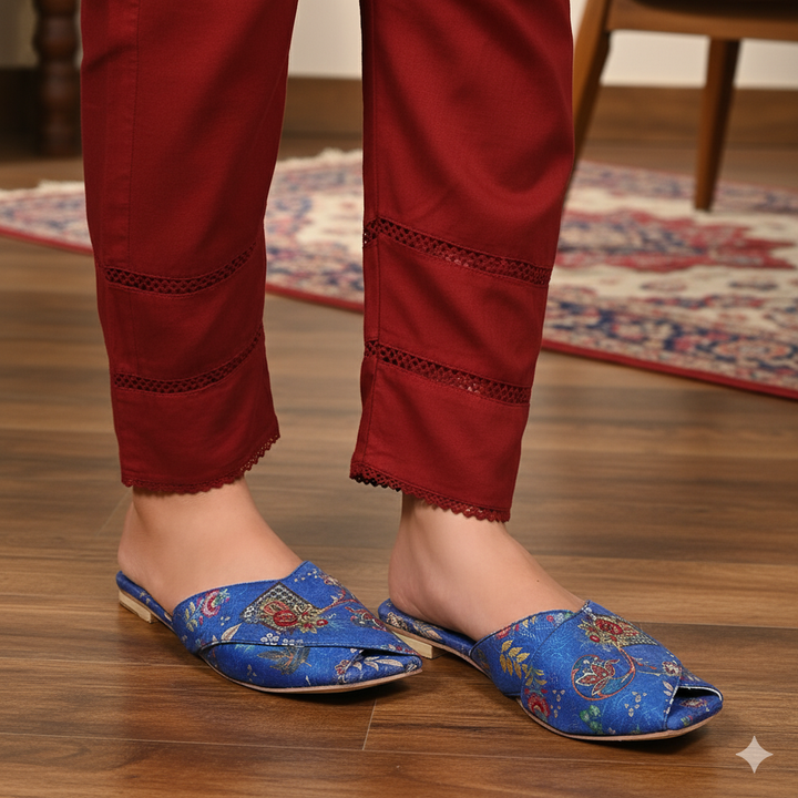 These printed slippers represent a prime example of delightful, opulent, and time-honored craftsmanship showcased in elegant flats, meticulously made by dedicated rural shoemakers to showcase the unparalleled beauty of captivating feet.