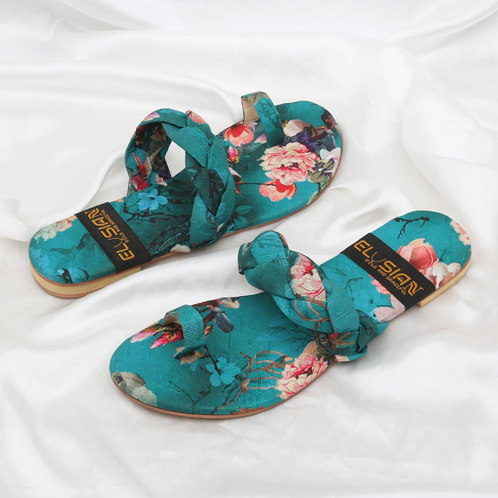 These printed slippers represent a prime example of delightful, opulent, and time-honored craftsmanship showcased in elegant flats, meticulously made by dedicated rural shoemakers to showcase the unparalleled beauty of captivating feet.