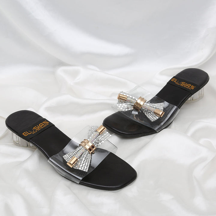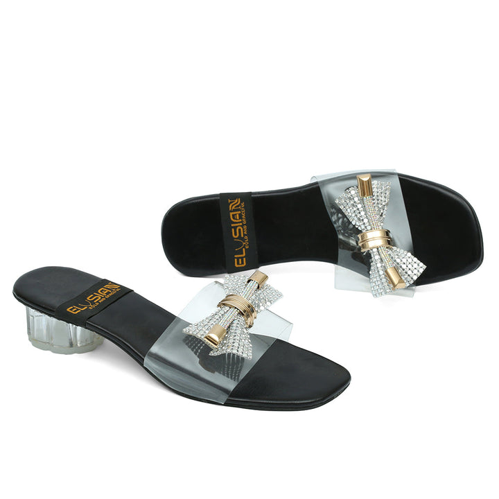 Heel-SQ1-Black(Bow) Chappal with exquisite bow detail on the upper is a true fashion statement. This elegant footwear seamlessly combines the allure of a classic heel with a playful twist, making it a must-have addition to your collection. The gracefully designed bow adds a touch of sophistication, while the comfortable heel ensures both style and comfort are in perfect harmony. Whether you’re dressing up for a night out or adding flair to your everyday look, Heel-SQ1-Black(Bow) Embellished Heel Chappal is your go-to choice for effortlessly elevating your ensemble. NOTE: Product color may vary due to lighting or screen settings.