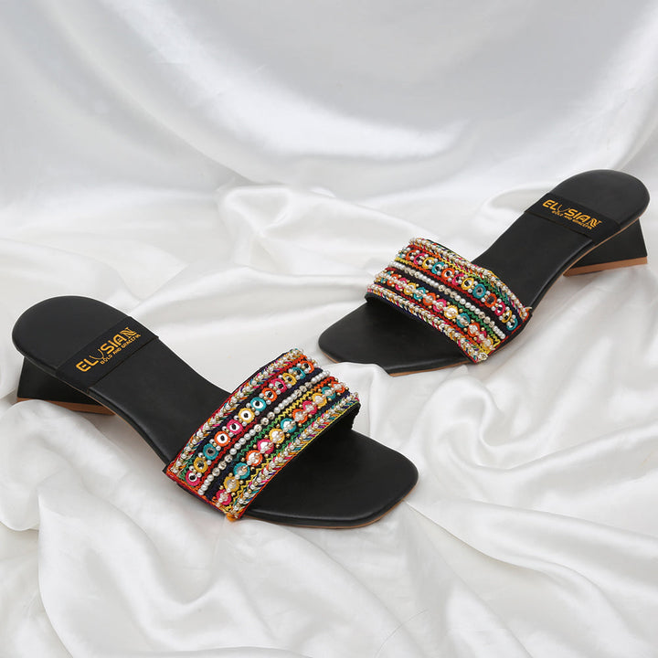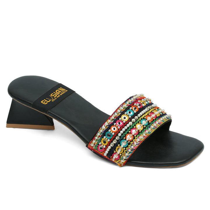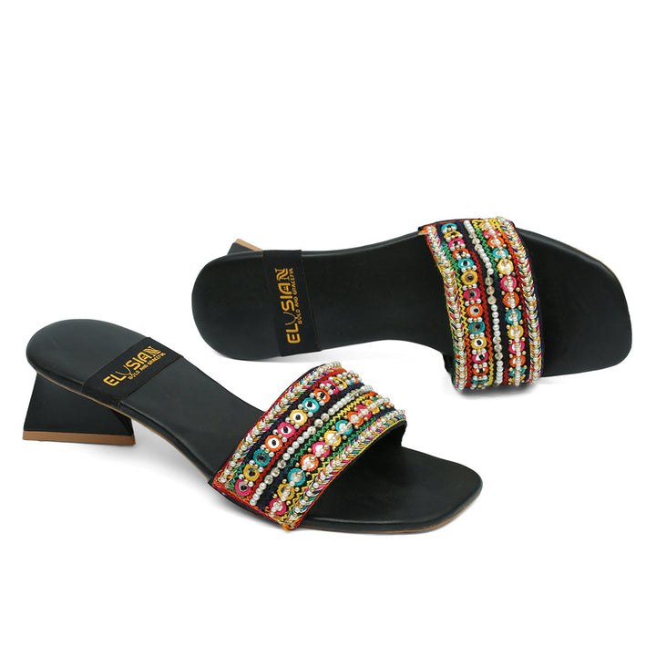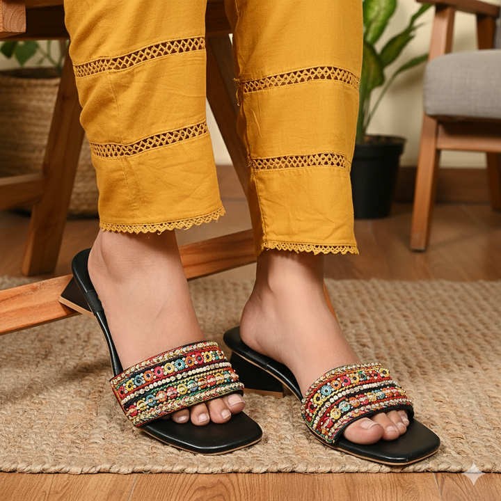 Heel-SW1-Black with exquisite bow hand-made detailing on the upper is a true fashion statement. This elegant footwear seamlessly combines the allure of a classic heel with a playful twist, making it a must-have addition to your collection. The gracefully designed bow adds a touch of sophistication, while the comfortable heel ensures both style and comfort are in perfect harmony. Whether you’re dressing up for a night out or adding flair to your everyday look, the Heel-SW1-Black Embellished Heel Chappal is your go-to choice for effortlessly elevating your ensemble.