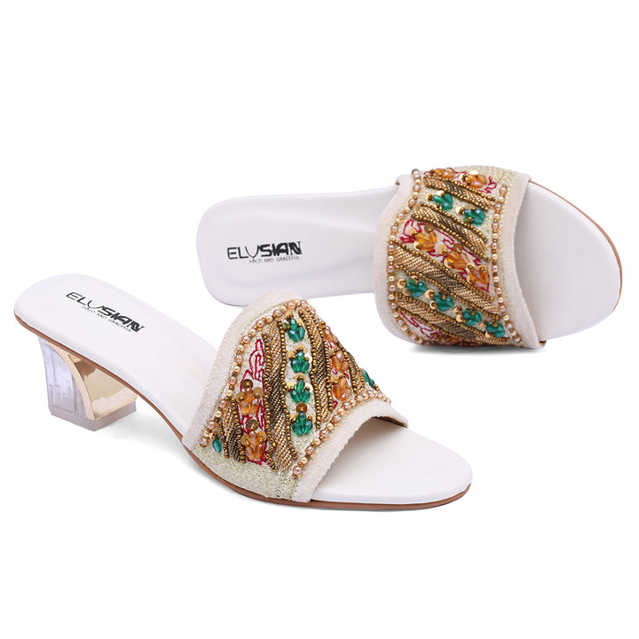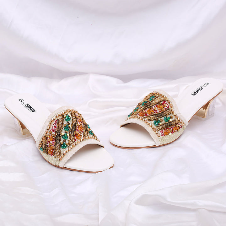 Heel-TQ1-Off White Chappal with exquisite handmade detail on the upper is a true fashion statement. This elegant footwear seamlessly combines the allure of a classic heel with a playful twist, making it a must-have addition to your collection. The gracefully designed bow adds a touch of sophistication, while the comfortable heel ensures both style and comfort are in perfect harmony. Whether you’re dressing up for a night out or adding flair to your everyday look, the Heel-DT201-Off-White Detailed-Embellished Heel Chappal is your go-to choice for effortlessly elevating your ensemble.