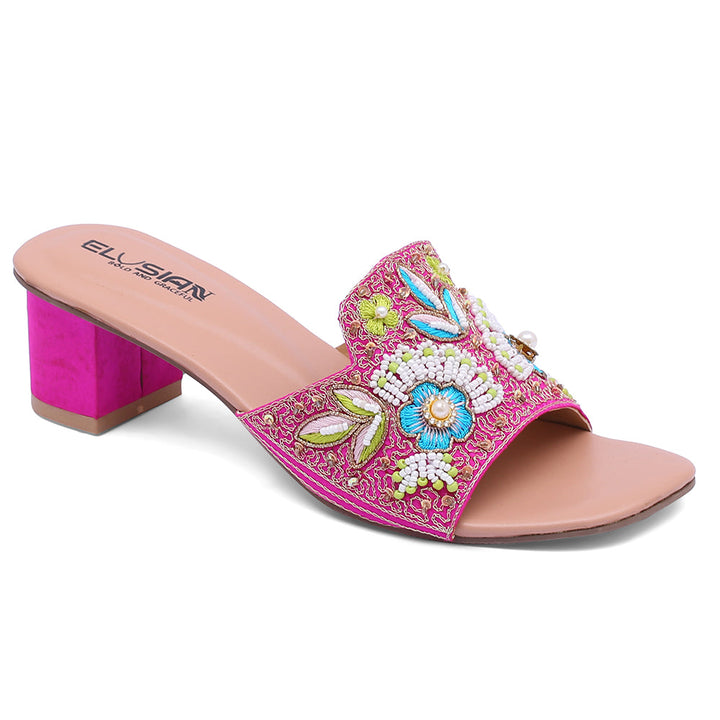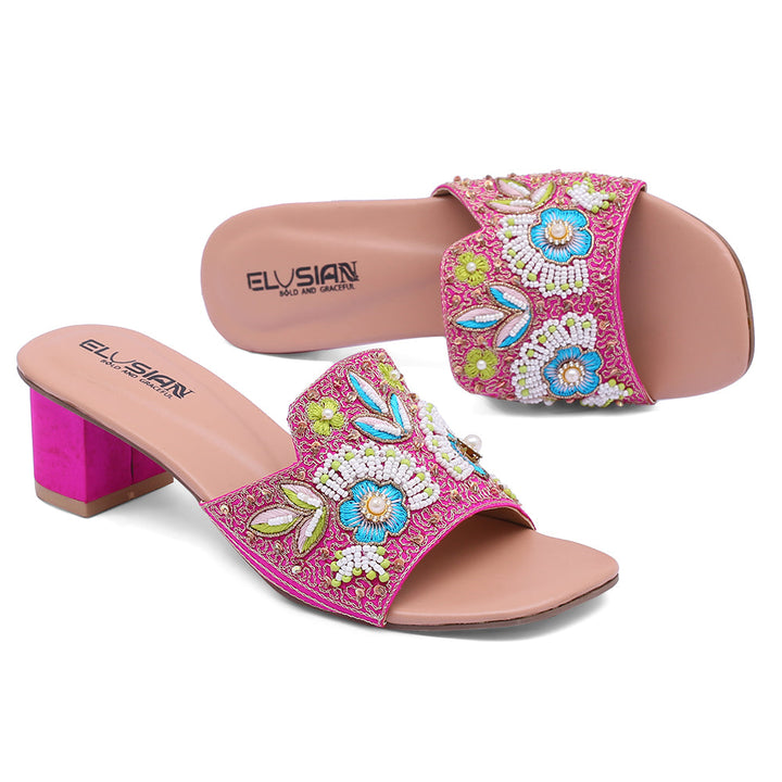 Heel-WS1-Pink Chappal with exquisite handmade detail on the upper is a true fashion statement. This elegant footwear seamlessly combines the allure of a classic heel with a playful twist, making it a must-have addition to your collection. The gracefully designed bow adds a touch of sophistication, while the comfortable heel ensures both style and comfort are in perfect harmony. Whether you’re dressing up for a night out or adding flair to your everyday look, the Heel-WS1-Pink Detailed-Embellished Heel Chappal is your go-to choice for effortlessly elevating your ensemble.
