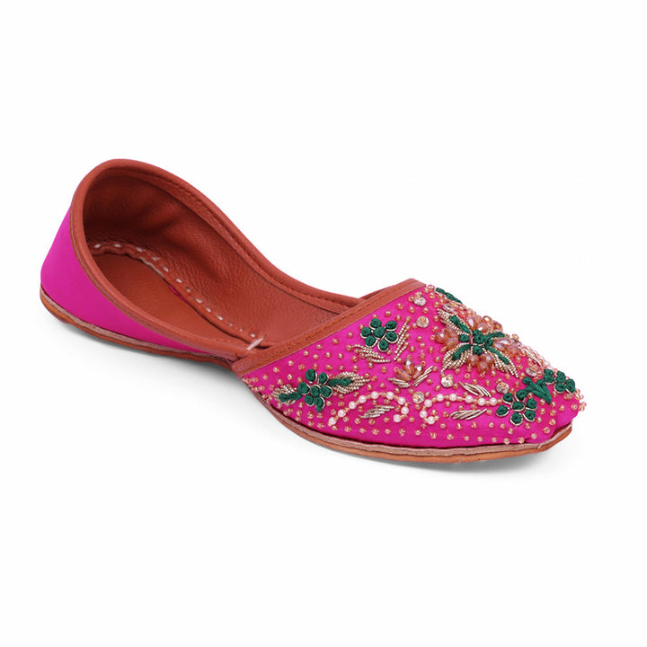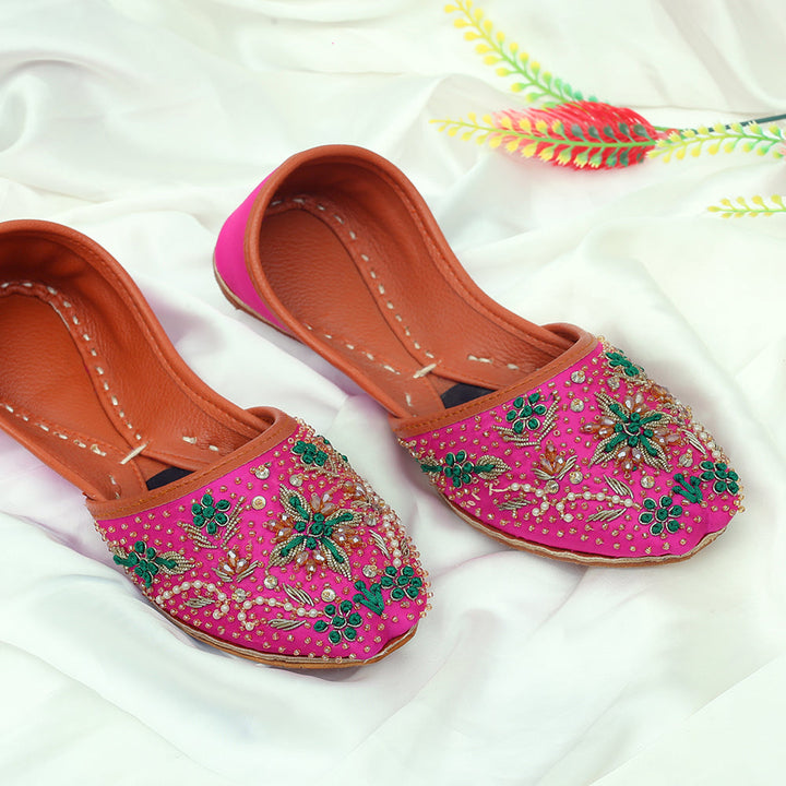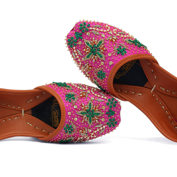 Khussa-AS2-Pink perfectly embodies a harmonious blend of luxurious tradition and artistry, set against a captivating pink backdrop and adorned with exquisite handcrafted details. These charming treasures, a testament to Pakistan’s heritage, are meticulously hand-sewn by dedicated rural artisans, showcasing the innate beauty of alluring feet.