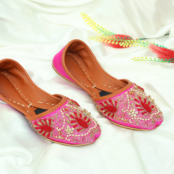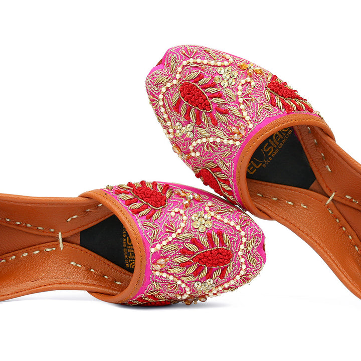 Khussa-AS6-Pink perfectly embodies a harmonious blend of luxurious tradition and artistry, set against a captivating pink backdrop and adorned with exquisite handcrafted details. These charming treasures, a testament to Pakistan’s heritage, are meticulously hand-sewn by dedicated rural artisans, showcasing the innate beauty of alluring feet.