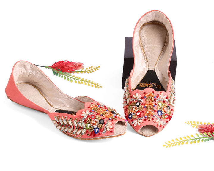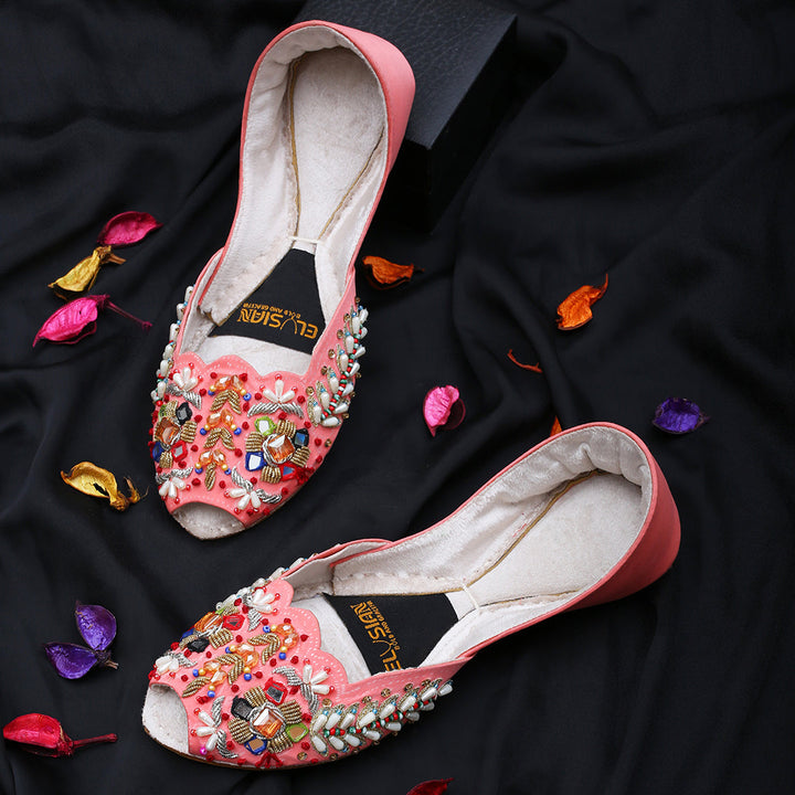 Expertly crafted with precision and care, Khussa-F1-Pink offers a snug fit that conforms to your feet for maximum comfort. With a padded sole and lightweight design, it prevents blisters while intricate embroidery adds a touch of elegance. Handmade with quality materials, this shoe is a must-have for any fashion-forward individual.