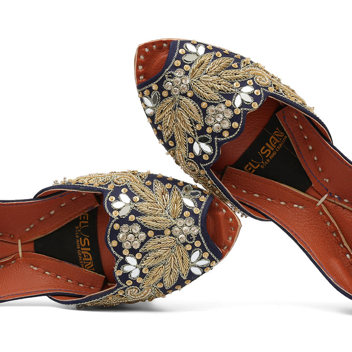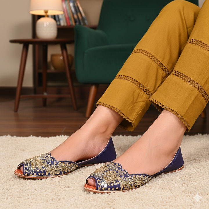 Expertly crafted with precision and care, Khussa-F10-Blue offers a snug fit that conforms to your feet for maximum comfort. Its padded sole and lightweight design prevent blisters, while intricate embroidery adds a touch of elegance. Handmade with quality materials, this shoe is a must-have for any fashion-forward individual.
