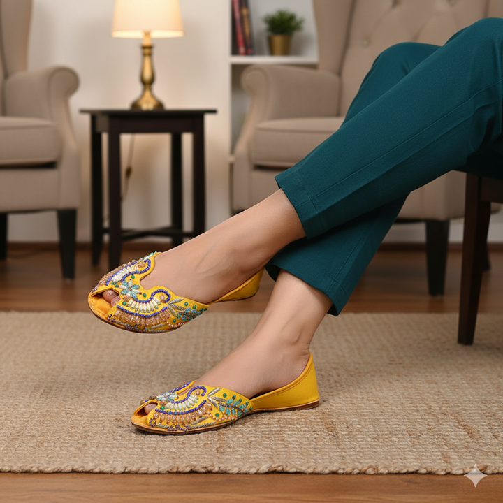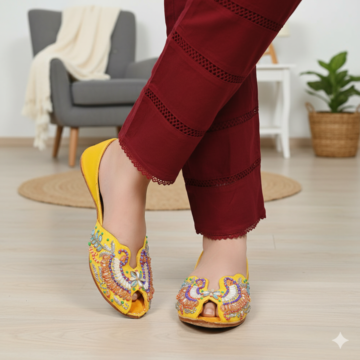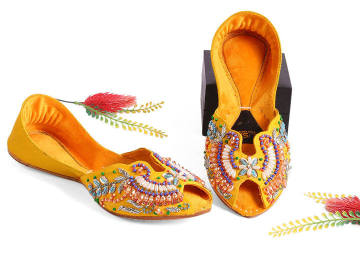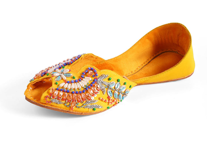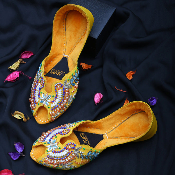 Expertly crafted with precision and care, Khussa-F2-Yellow offers a snug fit that conforms to your feet for maximum comfort. With a padded sole and lightweight design, it prevents blisters while intricate embroidery adds a touch of elegance. Handmade with quality materials, this shoe is a must-have for any fashion-forward individual.