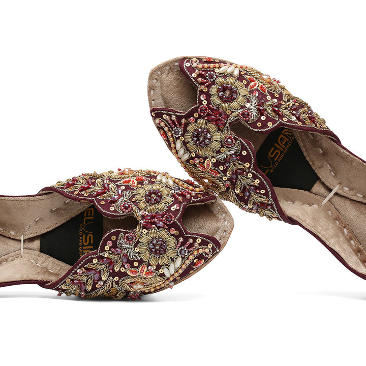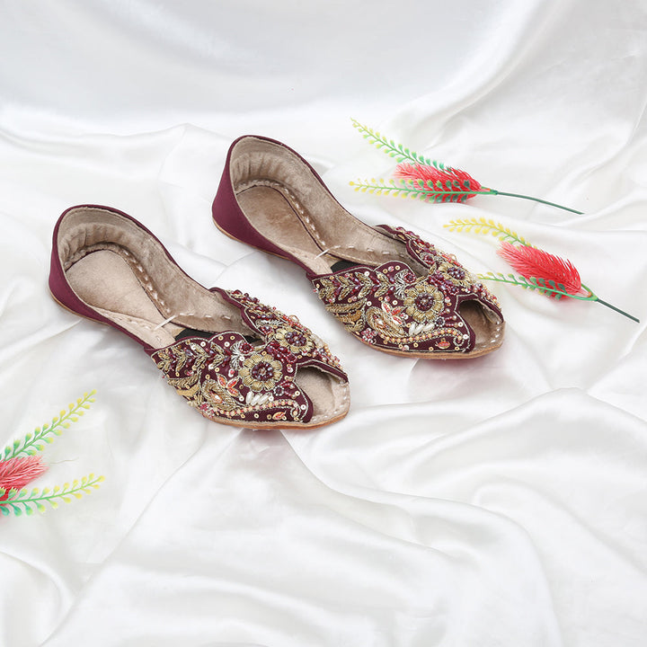 Expertly crafted with precision and care, Khussa-F8-Maroon offers a snug fit that conforms to your feet for maximum comfort. Its padded sole and lightweight design prevent blisters, while intricate embroidery adds a touch of elegance. Handmade with quality materials, this shoe is a must-have for any fashion-forward individual.