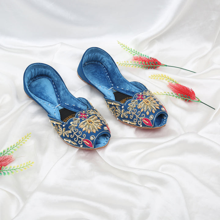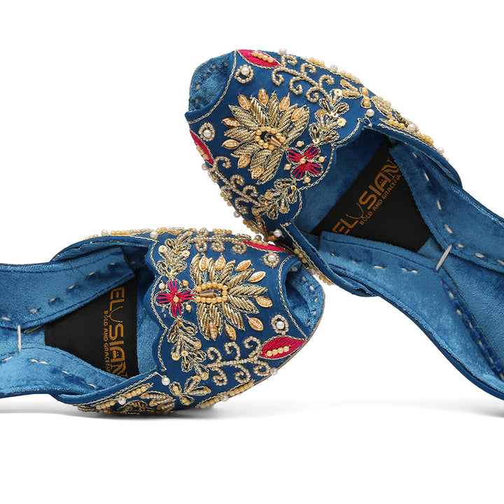 Expertly crafted with precision and care, Khussa-F9-Blue offers a snug fit that conforms to your feet for maximum comfort. Its padded sole and lightweight design prevent blisters, while intricate embroidery adds a touch of elegance. Handmade with quality materials, this shoe is a must-have for any fashion-forward individual.