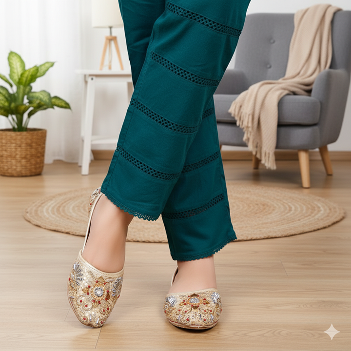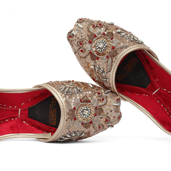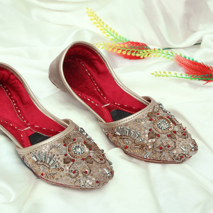 Khussa-Q1-Fawn perfectly embodies a harmonious blend of luxurious tradition and artistry, set against a captivating fawn backdrop and adorned with exquisite handcrafted details. These charming treasures, a testament to Pakistan’s heritage, are meticulously hand-sewn by dedicated rural artisans, showcasing the innate beauty of alluring feet.
