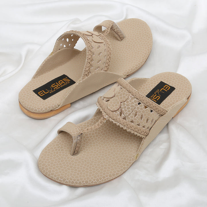 KL-IR1-Fawn represents a prime and outstanding example of Kolhapuri footwear, characterized by its delightful, opulent, and traditional craftsmanship. Crafted on a foundation of Jute, these shoes showcase intricate handmade embellishments. These remarkable creations are cherished cultural artifacts of Pakistan, meticulously stitched by dedicated cobblers from rural communities, showcasing the unparalleled elegance designed to adorn and enhance the allure of one’s feet.