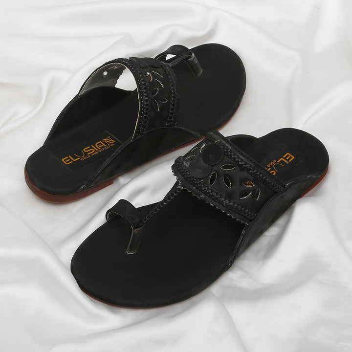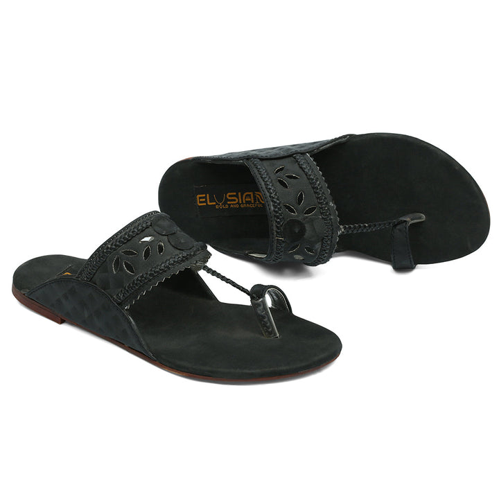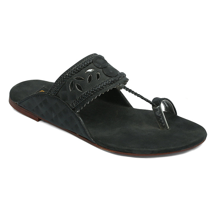 KL-IR2-Black represents a prime and outstanding example of Kolhapuri footwear, characterized by its delightful, opulent, and traditional craftsmanship. Crafted on a black foundation, these shoes showcase intricate handmade embellishments. These remarkable creations are cherished cultural artifacts of Pakistan, meticulously stitched by dedicated cobblers from rural communities, showcasing the unparalleled elegance designed to adorn and enhance the allure of one’s feet.