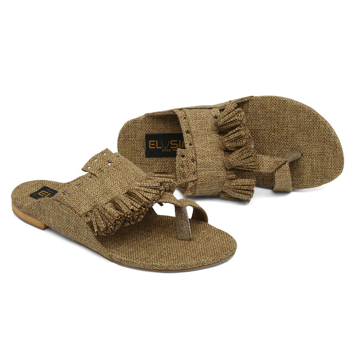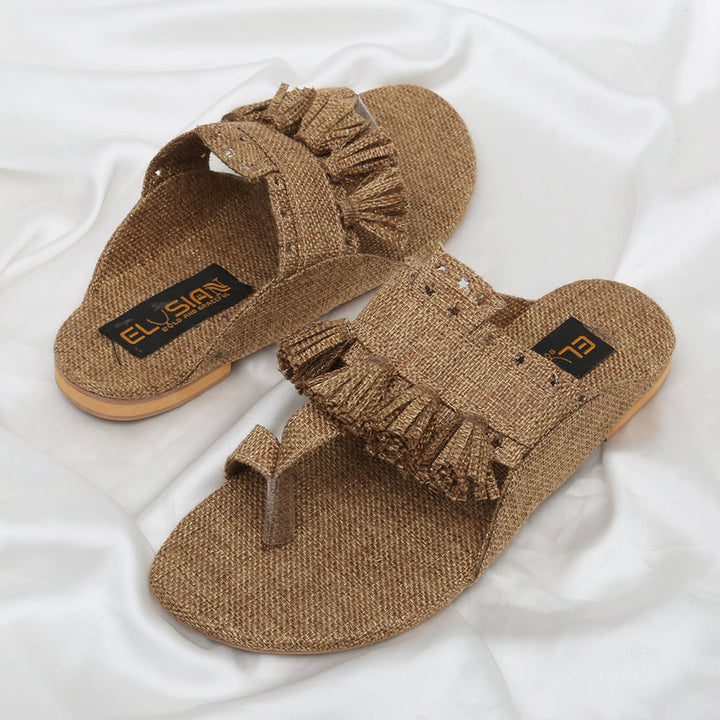 KL-IR8-Jute represents a prime and outstanding example of Kolhapuri footwear, characterized by its delightful, opulent, and traditional craftsmanship. Crafted on a jute foundation, these shoes showcase intricate handmade embellishments. These remarkable creations are cherished cultural artifacts of Pakistan, meticulously stitched by dedicated cobblers from rural communities, showcasing the unparalleled elegance designed to adorn and enhance the allure of one’s feet.