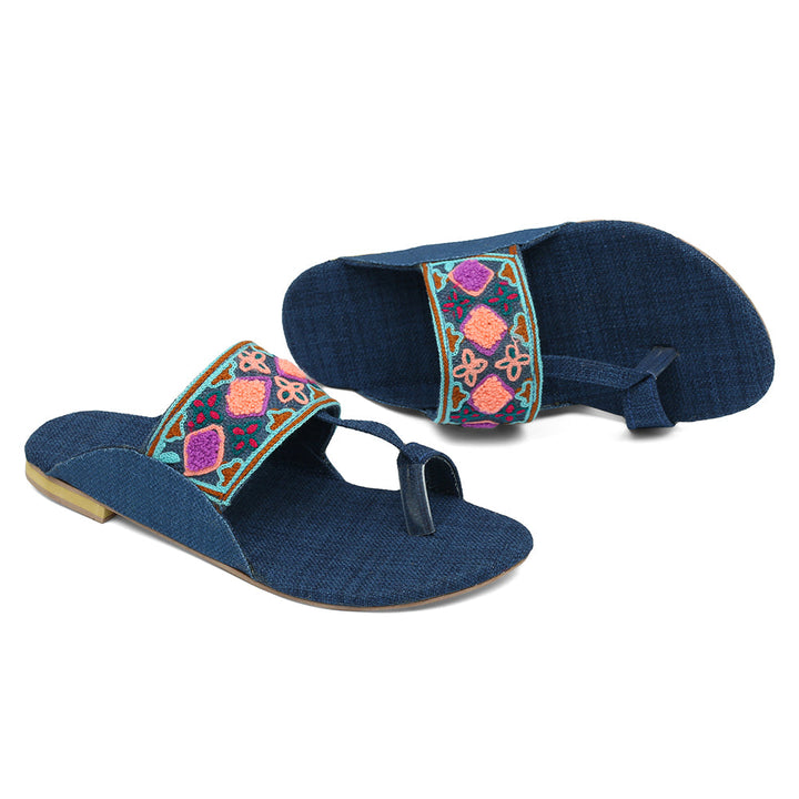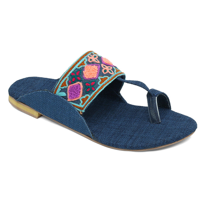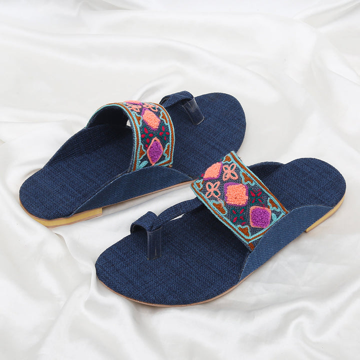 KL-SJ5-Denim represents a prime and outstanding example of Kolhapuri footwear, characterized by its delightful, opulent, and traditional craftsmanship. Crafted on a foundation of denim jute, these shoes showcase intricate handmade embellishments. These remarkable creations are cherished cultural artifacts of Pakistan, meticulously stitched by dedicated cobblers from rural communities, showcasing the unparalleled elegance designed to adorn and enhance the allure of one’s feet.