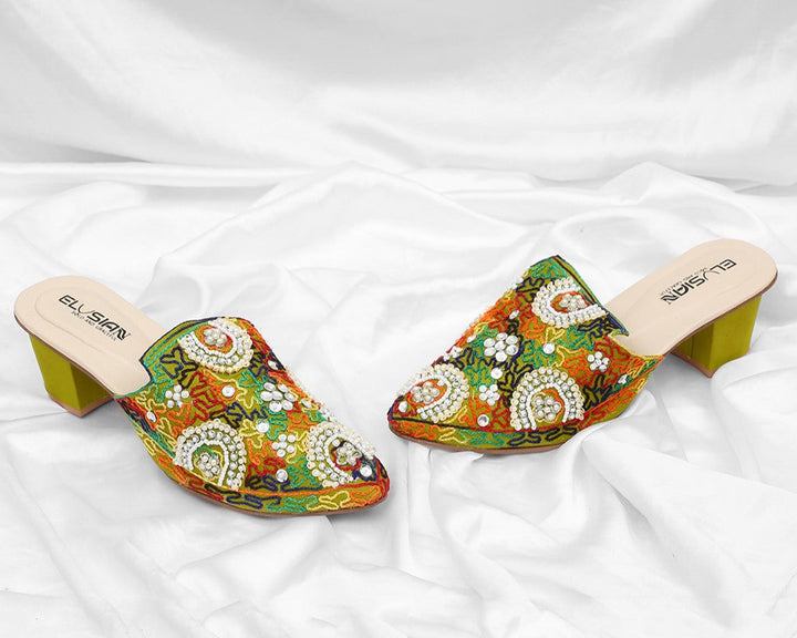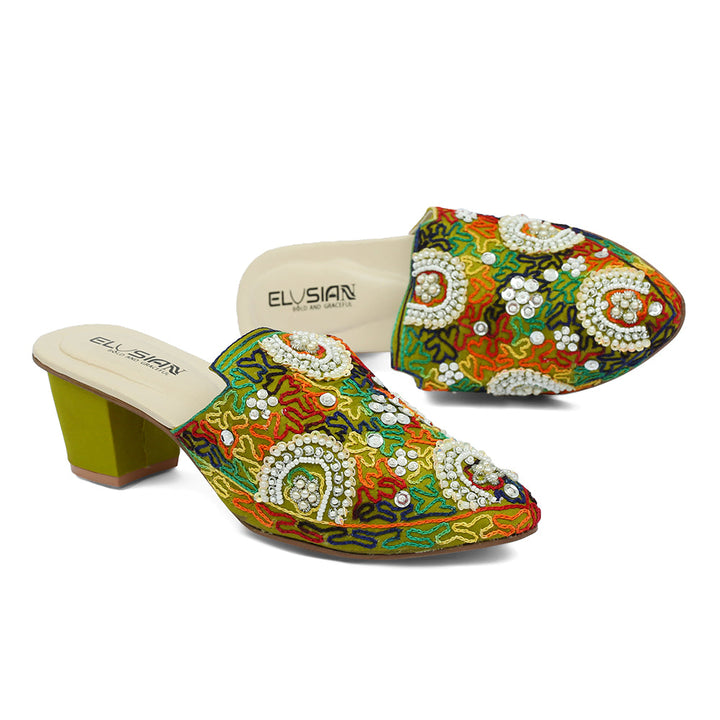 ML-As12-Dhani stands as a true embodiment of delightful, opulent, and timeless artistry, crafted upon a rich green foundation and adorned with a captivating blend of intricate embroidery. These treasured symbols of Pakistan’s heritage are meticulously hand-sewn by dedicated shoemakers from rural regions, proudly showcasing the exquisite allure of captivating feet.