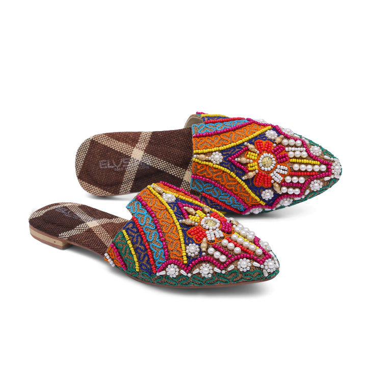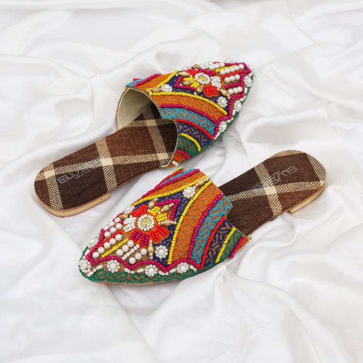 ML-AS2-Multi stands as a true embodiment of delightful, opulent, and timeless artistry, crafted upon a rich fawn jute foundation and adorned with a captivating blend of intricate embroidery. These treasured symbols of Pakistan’s heritage are meticulously hand-sewn by dedicated shoemakers from rural regions, proudly showcasing the exquisite allure of captivating feet.