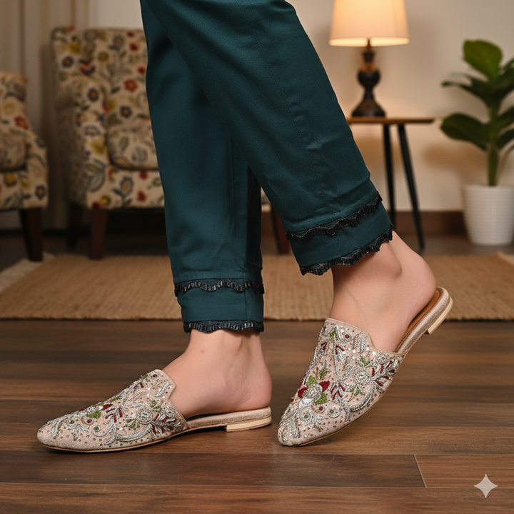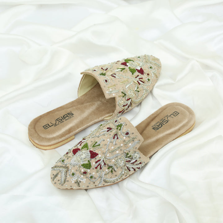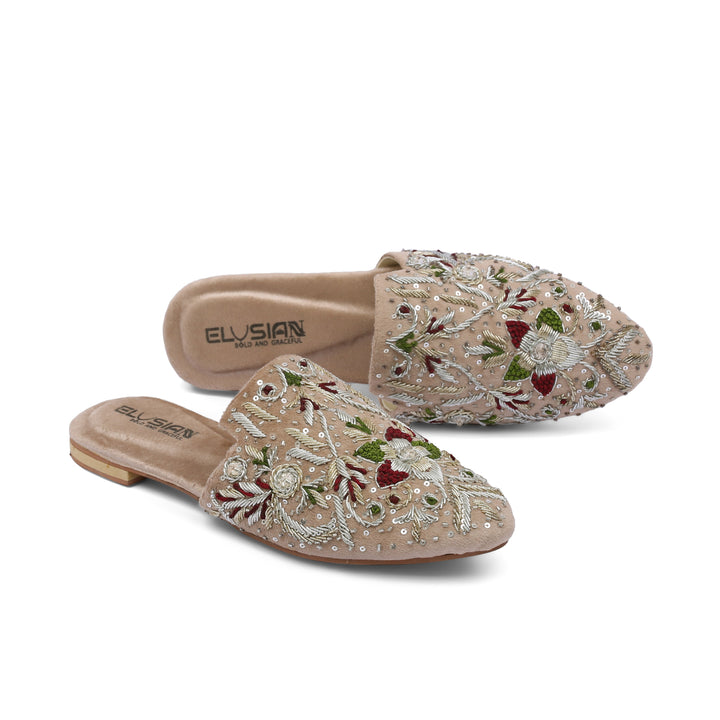 ML-AS3-Fawn stands as a true embodiment of delightful, opulent, and timeless artistry, crafted upon a rich fawn velvet foundation and adorned with a captivating blend of intricate embroidery. These treasured symbols of Pakistan’s heritage are meticulously hand-sewn by dedicated shoemakers from rural regions, proudly showcasing the exquisite allure of captivating feet.