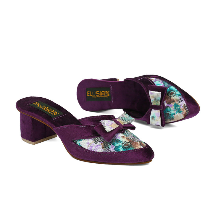 ML-IN5-Printed-Upper-Bow-Purple-(Heel) stands as a true embodiment of delightful, opulent, and timeless artistry, crafted and adorned with a captivating blend of intricate design. These treasured symbols of Pakistan’s heritage are meticulously hand-sewn by dedicated shoemakers from rural regions, proudly showcasing the exquisite allure of captivating feet.