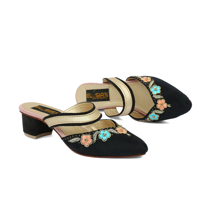 ML-K1-Black-(Heel) stands as a true embodiment of delightful, opulent, and timeless artistry, crafted upon a rich black velvet foundation and adorned with a captivating blend of intricate embroidery. These treasured symbols of Pakistan’s heritage are meticulously hand-sewn by dedicated shoemakers from rural regions, proudly showcasing the exquisite allure of captivating feet.