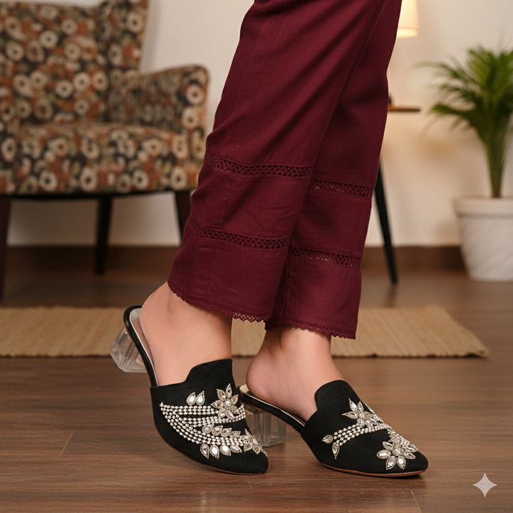ML-S10-Black embodies delightful, opulent, and timeless artistry, crafted upon a rich black foundation and adorned with a captivating blend of intricate embroidery. These treasured symbols of Pakistan’s heritage are meticulously hand-sewn by dedicated shoemakers from rural regions, proudly showcasing the exquisite allure of captivating feet.