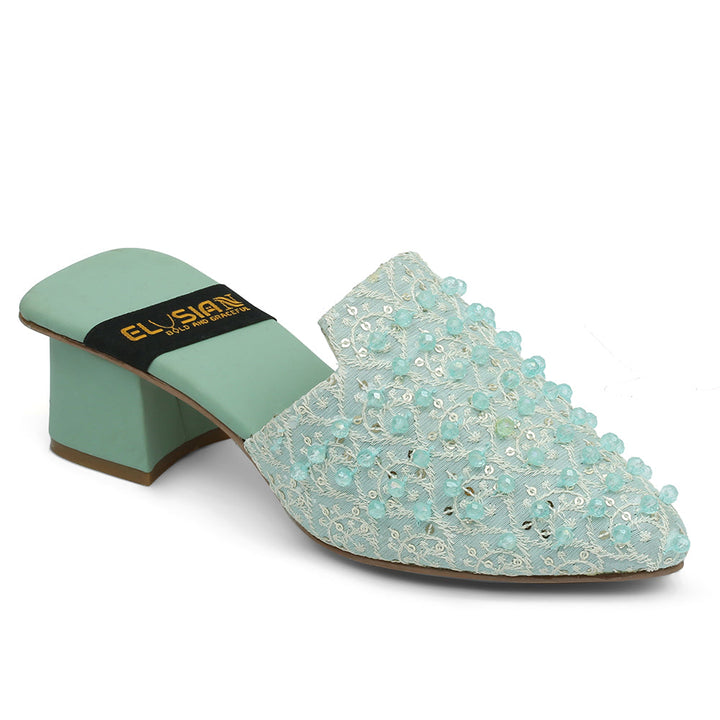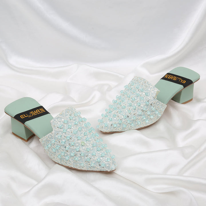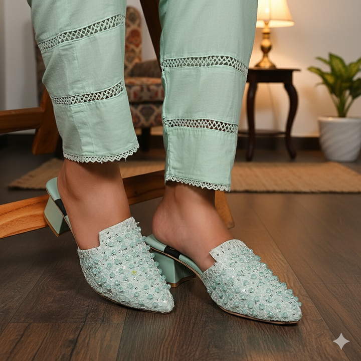 ML-S4-Aqua Pearls (Heel) stands as a true embodiment of delightful, opulent, and timeless artistry, crafted upon a rich pink foundation and adorned with a captivating blend of intricating pearls. These treasured symbols of Pakistan’s heritage are meticulously hand-sewn by dedicated shoemakers from rural regions, proudly showcasing the exquisite allure of captivating feet.