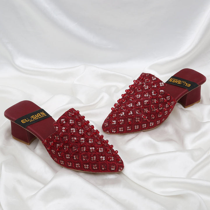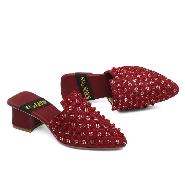 ML-S4-Red Pearls (Heel) stands as a true embodiment of delightful, opulent, and timeless artistry, crafted upon a rich red foundation and adorned with a captivating blend of intricating pearls. These treasured symbols of Pakistan’s heritage are meticulously hand-sewn by dedicated shoemakers from rural regions, proudly showcasing the exquisite allure of captivating feet.