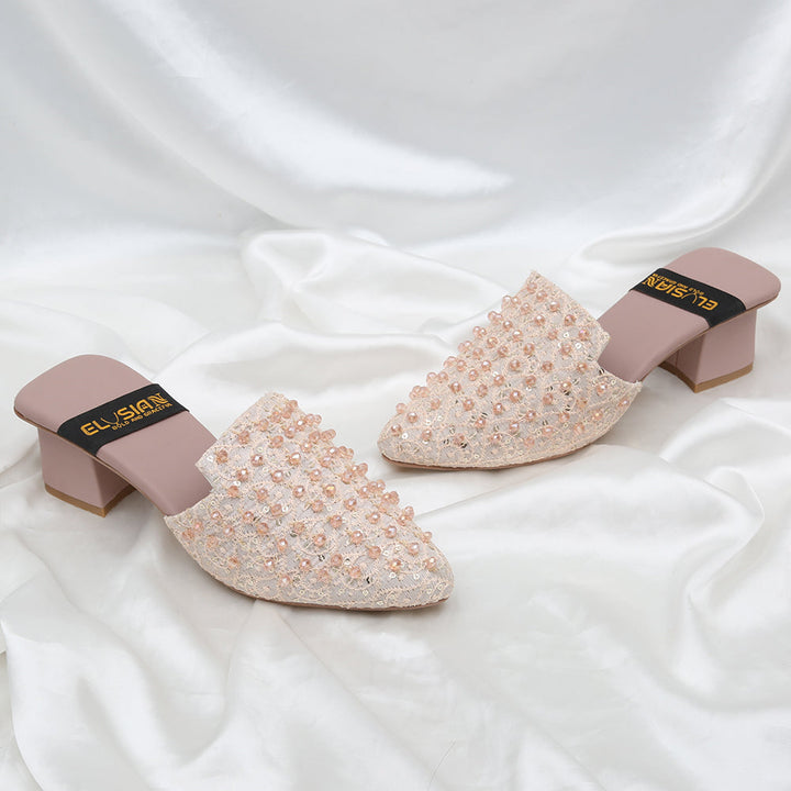 ML-S5-Pink Pearls (Heel) stands as a true embodiment of delightful, opulent, and timeless artistry, crafted upon a rich pink foundation and adorned with a captivating blend of intricating pearls. These treasured symbols of Pakistan’s heritage are meticulously hand-sewn by dedicated shoemakers from rural regions, proudly showcasing the exquisite allure of captivating feet.
