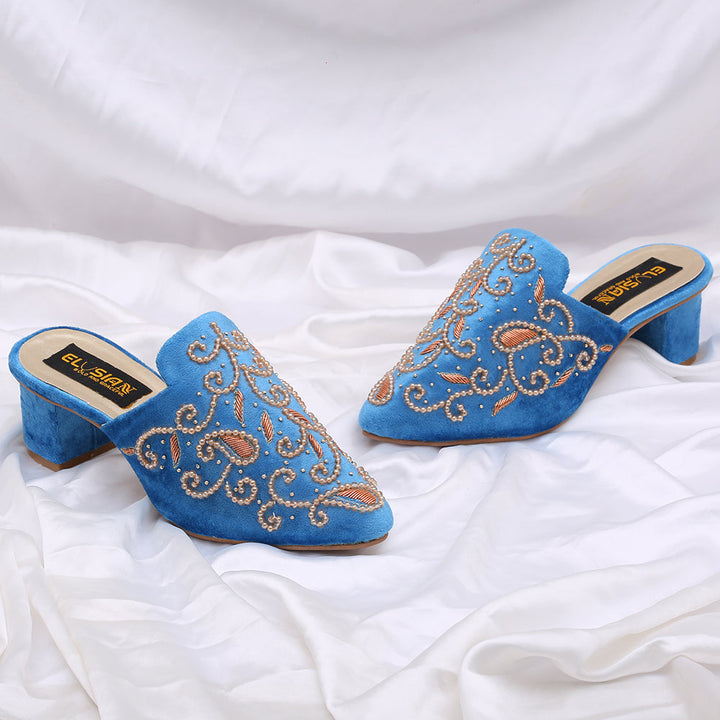 ML-S6-Blue embodies delightful, opulent, and timeless artistry, crafted upon a rich blue foundation and adorned with a captivating blend of intricate embroidery. These treasured symbols of Pakistan’s heritage are meticulously hand-sewn by dedicated shoemakers from rural regions, proudly showcasing the exquisite allure of captivating feet.