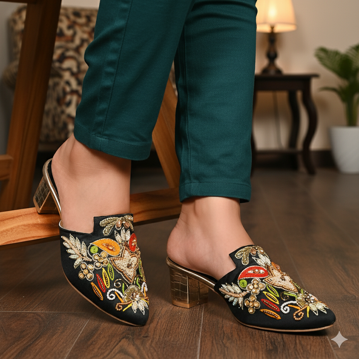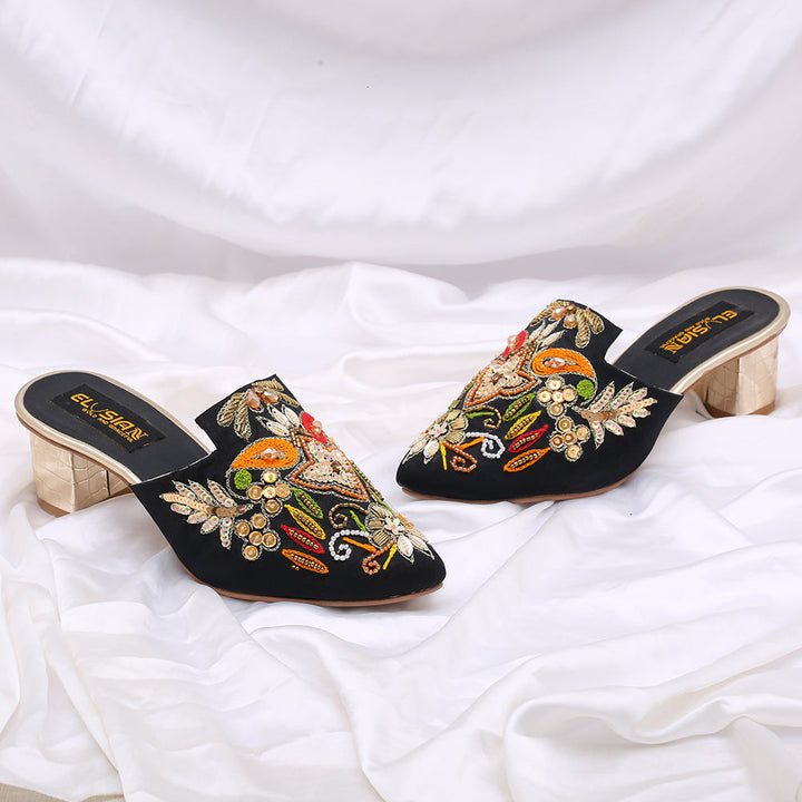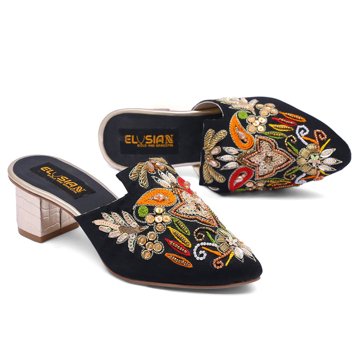 ML-S8-Black embodies delightful, opulent, and timeless artistry, crafted upon a rich black foundation and adorned with a captivating blend of intricate embroidery. These treasured symbols of Pakistan’s heritage are meticulously hand-sewn by dedicated shoemakers from rural regions, proudly showcasing the exquisite allure of captivating feet.