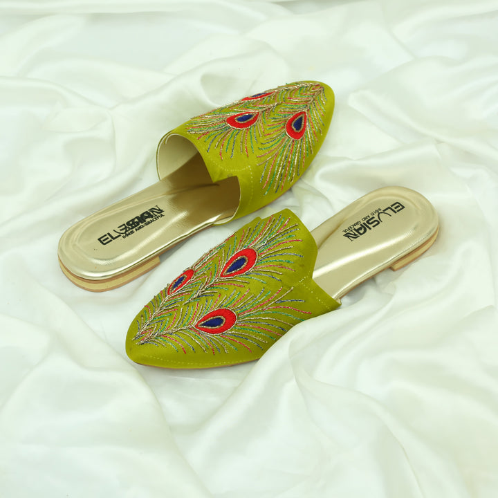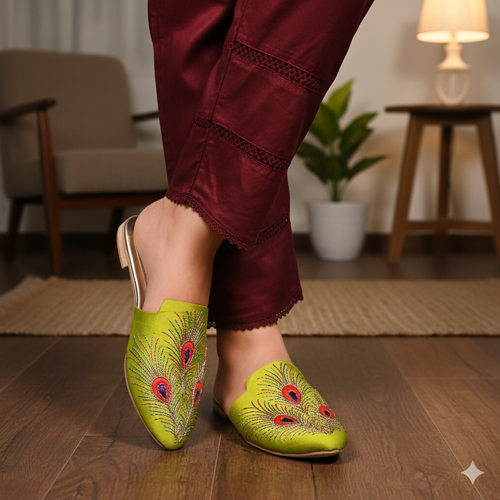 ML-WS8-Dhani stands as a true embodiment of delightful, opulent, and timeless artistry, crafted upon a rich green foundation and adorned with a captivating blend of intricate embroidery. These treasured symbols of Pakistan’s heritage are meticulously hand-sewn by dedicated shoemakers from rural regions, proudly showcasing the exquisite allure of captivating feet.