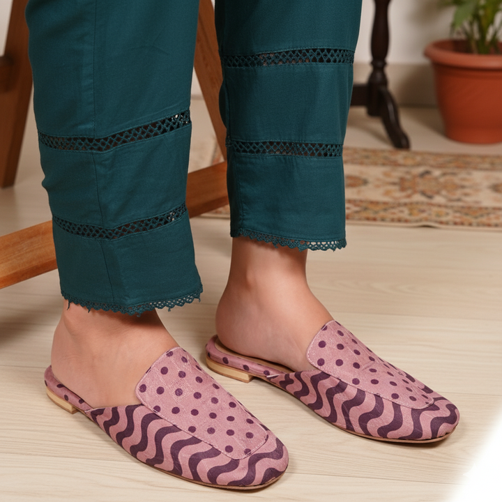 Explore the irresistible allure of Elysian's Printed Mules! These remarkable mules blend opulence and heritage effortlessly, featuring vibrant printed designs inspired by Pakistan's rich cultural tapestry. Crafted with precision by talented rural artisans, each pair reflects meticulous artistry and enhances the natural grace of your feet. Elevate your fashion statement with sophistication and cultural flair with our printed mules! They are a must-have for your seasonal closet.