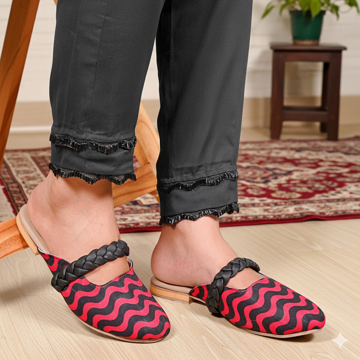 Explore the irresistible allure of Elysian's Printed Mules! These remarkable mules blend opulence and heritage effortlessly, featuring vibrant printed designs inspired by Pakistan's rich cultural tapestry. Crafted with precision by talented rural artisans, each pair reflects meticulous artistry and enhances the natural grace of your feet. Elevate your fashion statement with sophistication and cultural flair with our printed mules! They are a must-have for your seasonal closet.