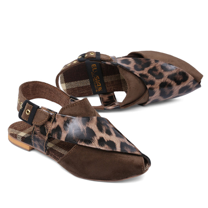 The Peshawari-I6-Brown (Tiger Print) is an exquisite representation of traditional craftsmanship and modern elegance. Handcrafted with meticulous attention to detail, this women’s sandal captures the essence of Peshawari footwear culture while incorporating contemporary design elements. Made from high-quality material, the sandal features embellishments that showcase the rich cultural heritage of Peshawar, Pakistan. With its comfortable sole and adjustable straps, the Peshawari-I6-Brown seamlessly blends tradition and comfort, making it a perfect choice for both casual outings and special occasions. Whether paired with ethnic attire or contemporary outfits, this sandal exudes timeless charm and style.